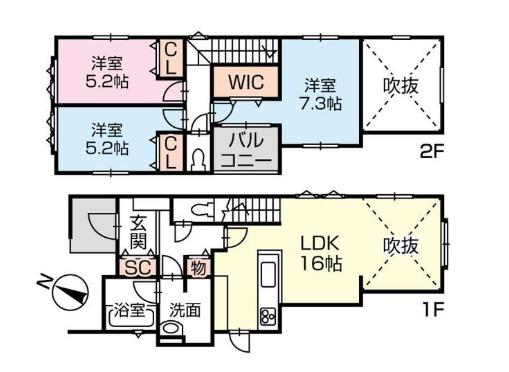 特徴 | 吹抜、住宅性能保証付、新築時・増改築時の設計図、2沿線以上利用可、全居室収納、閑静な住宅地、浴室1坪以上、2階建、オートバス、浴室に窓、全居室フローリング、シューズインクローク、納戸 | ||